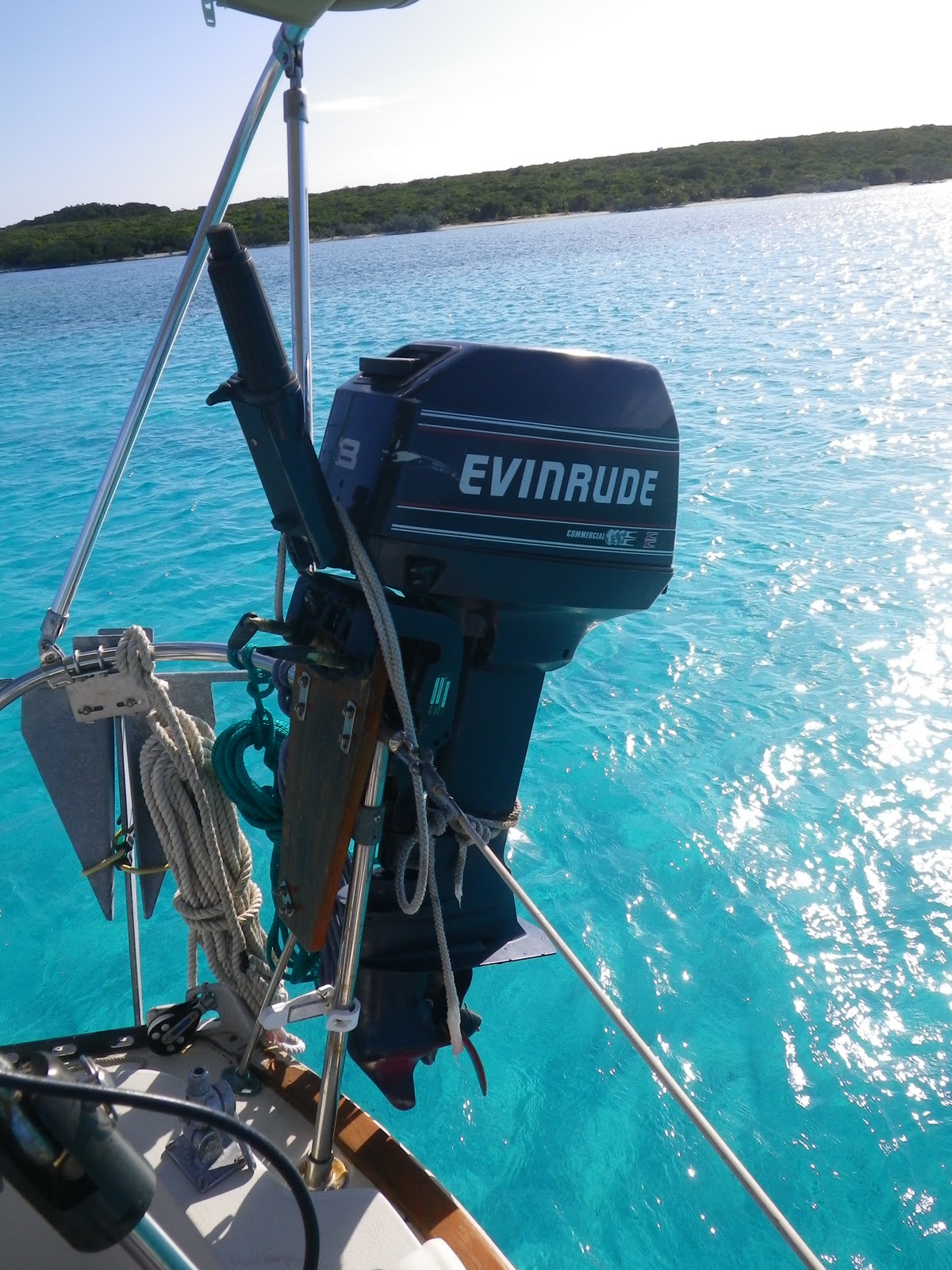 At 630am we had fog that quickly cleared after the sun rose. Kevin stopped by and asked if Phil wanted to go dive fishing with them – YES and I went along too to fish from the dinghy. Lorraine is determined to catch a fish for supper!! But before we went, Phil went to S/V Maribelle to try out their Evinrude 8Hp 2 cycle short shaft outboard engine on our dinghy